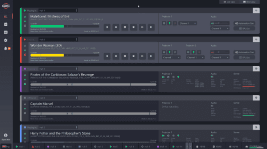 Monitor every aspect of your cinema’s sight and sound equipment and content at a glance. The status of projectors, LED cinema screens, media servers and audio devices is displayed with real-time information, while the projector and audio processor controller provides the control you need. The TMS-2000WEB GUI supports 11 languages, catering to your region’s needs.